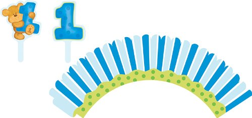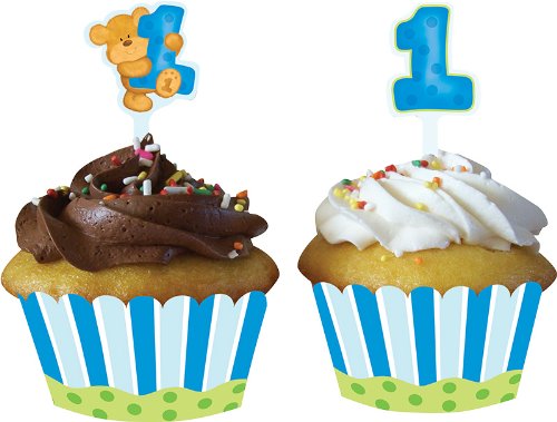 12-Count Cupcake Wrappers with Picks, Bears First Birthday, Blue