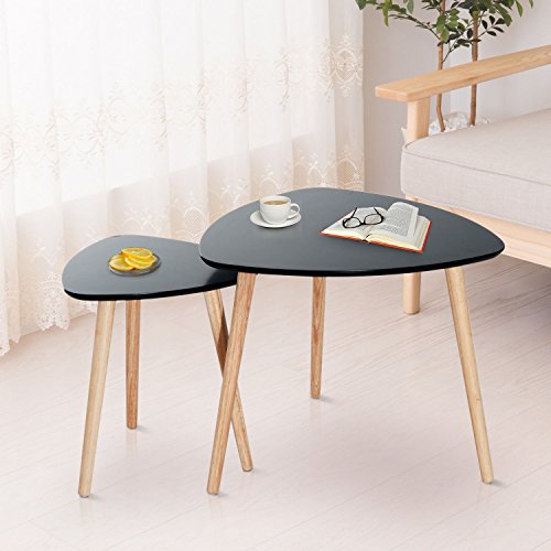 -. Feature : Large Side Table Size: 23.8"W23.6"Dx19.5"H Small Side Table Size: 16.5"Wx16.3"Dx17.2"H / Wood Leg Size: Φ1.6"x18.9" (large one), Φ0.8"x16.5"(small one) / Material: MDF, Rubber Wood / Color: Black / Shipping from Warehouse in USA