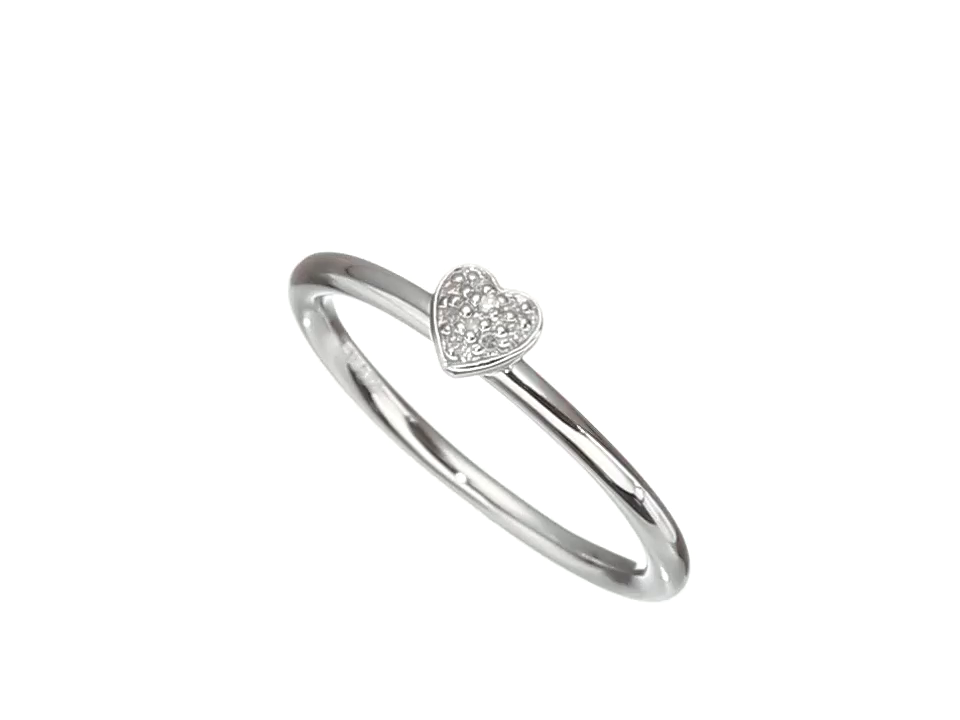 Sterling Silver with Gold Plating Diamond Heart Ring, Size 7