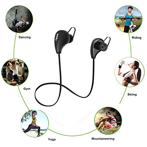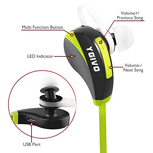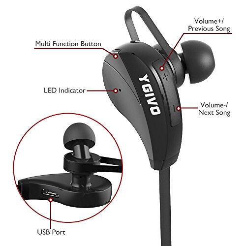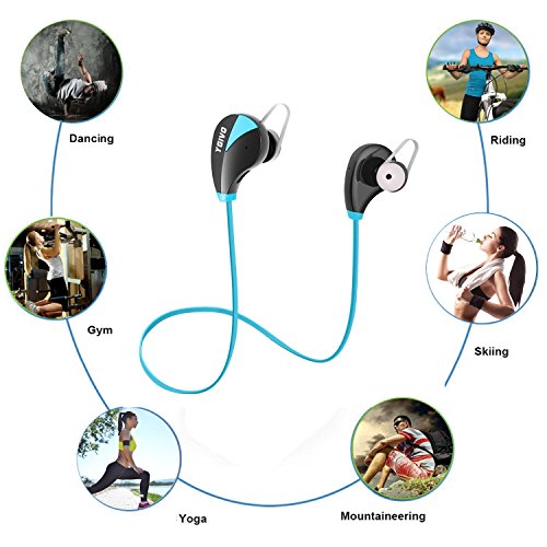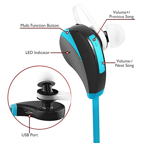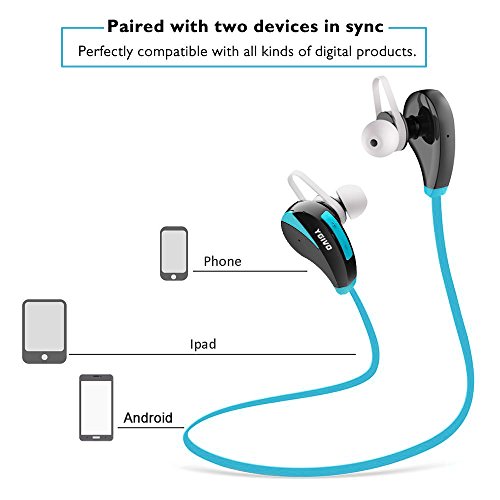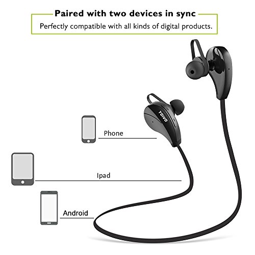 -. Feature : High fidelity sound;this headphone is equipped with CSR chip,ensures maximum signal quality, and guarantees outstanding sound quality. / UItralight and comfortable design,ergonomically-shaped in-ear plugs and ear loops brings comfortable and no heavy feeling even after long-time wearing.Sweat-Resistant design,can avoid your headphones being damaged by sweat,while you are going outside or doing exercise. / Comes with different size ear-buds for choice to fit for different size ears,it will bring comfortable wearing experience for peoper,the fit ear-buds can also block the noise for oueside to prevent the sound quality being disturbed. / Can say "Yes" to answer or say "No" to reject your incoming phone calls, 5 hours music playing for full battery charge,2 hours Super quick charge time with full charge light indication.The headphone battery status will be automatically displayed on the IOS Phone screen. / With easy to USE buttons Allows Skip/Play/Pause on your music tracks as well as all phone use without reaching your phone. Up to 30ft Bluetooth range in the open space and 10ft in the obstacles space. Can be connected with two devices Simultaneously. Super quick pairing with android, IOS and other bluetooth devices.