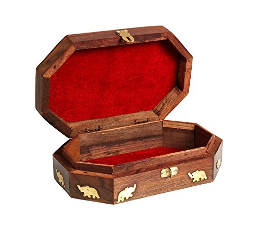 -. Binding : Kitchen -. Brand : IndiaBigShop -. Color : Brown -. Department : Womens -. EAN : 0737993189114 -. Feature : Dimensions: Length - 8 inches; Width - 5 inches; Height - 2.5 inches / Crafted using the finest richly hued timber Rosewood and further adorned with an exquisite brass inlay of elephant motifs and a hand carved floral trellis border. / The box comes with a velvet inner lining and a brass latch to keep the contents scratches free and secure. / Store your valuables like personal jewelry or family heirlooms and add a touch of class to your dressing table. / Handmade by skilled artisans from Saharanpur - India's largest hub for high quality wooden handicrafts. -. IsAutographed : 0 -. Label : IndiaBigShop -. Manufacturer : IndiaBigShop -. Model : IBS0145 -. MPN : IBS0145 -. PartNumber : IBS0145 -. ProductGroup : Home -. ProductTypeName : HOME -. Publisher : IndiaBigShop -. Studio : IndiaBigShop -. Title : Special Gifts at Good Friday.Wooden Jewelry Box, Octal Carving Storage Box, Vintage Box, Keepsake Box 8X5 inch -. UPC : 737993189114
