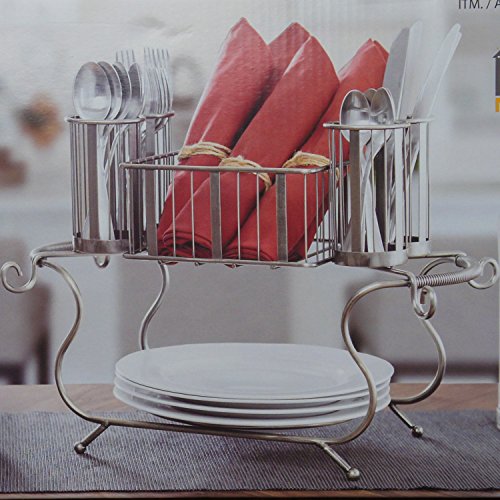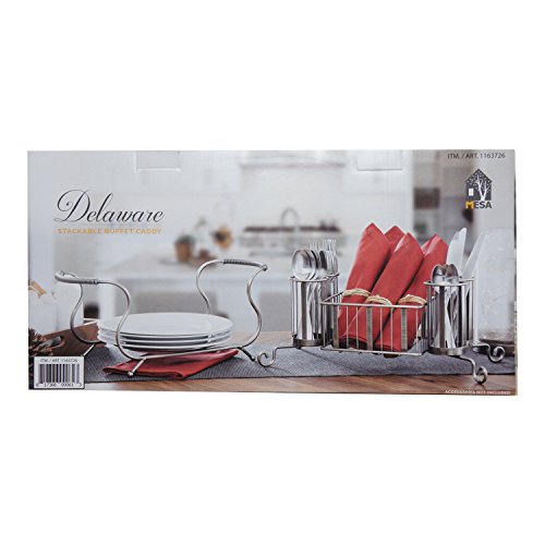 HOLDS IT ALL IN ONE. With the Mesa Delaware Carry All Buffet Caddy and Flatware Holder entertaining and serving guests has never been easier. This Organizer comes equipped with 4 cupped slots for silverware or all sorts of cutlery, a space in the middle for napkins of almost any size, and even a place right in the at the base for plates.
