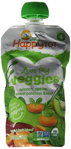 -. Feature : Happy Family Tot Love My Veggies Purees - Spianch Apple Sweet Potato and Kiwi - 4.22 oz - 8 Pack