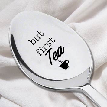 - High Quality Engraved spoon Engraved, that says” But First, TEA” .We guarantee that letters will be perfectly aligned.