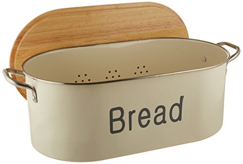 Bread Box - Metal Bread Bin with Oak Lid Cream - by SveBake