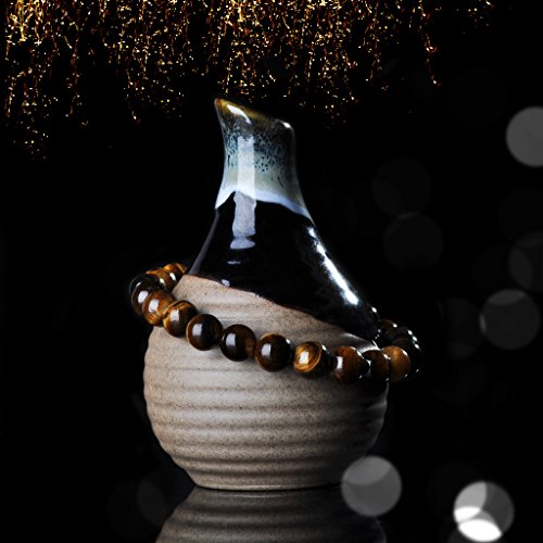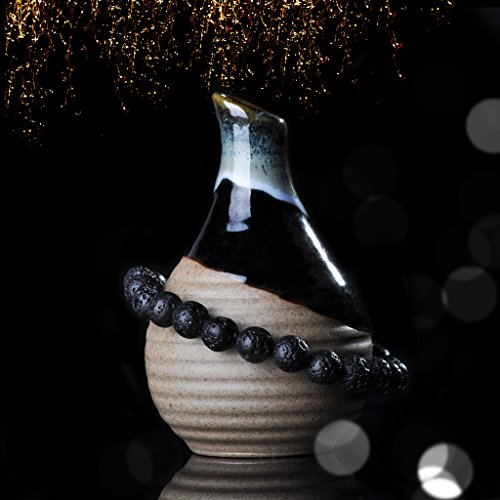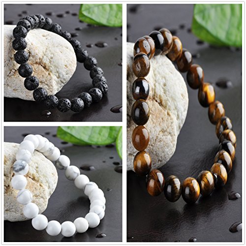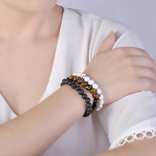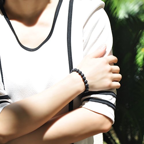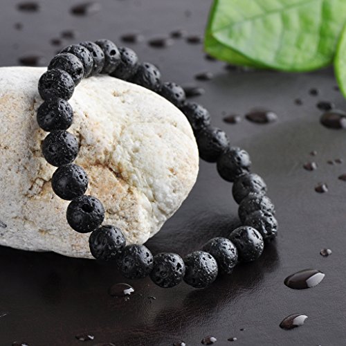 Unendlich U Cool Damen Herren Unisex Buddha Armband Armreif, 9mm Energie-Stein Kugeln Perlen Gebet Mala Stretch Energiearmband, Braun/Weiss/Schwarz(Lavastein)