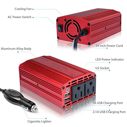 BESTEK Advantage: America's leading power inverter brand. Convert DC from your car lighter socket to 2 AC outlets and 3.1A dual USB charging ports, ideal for use at campsites, road trips or anywhere dc to ac inverter is needed