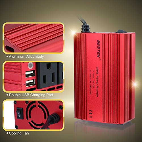 BESTEK 300W Power Inverter DC 12V to 110V AC Converter with 3.1A Dual USB Car Adapter