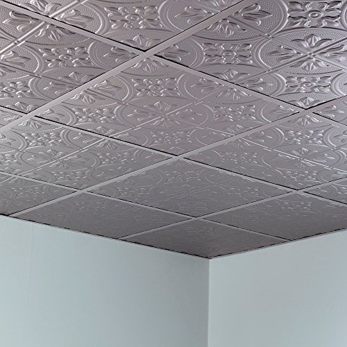 Fasade Easy Installation Traditional 2 Argent Silver Lay In Ceiling Tile / Ceiling Panel (2' x 2' Tile)