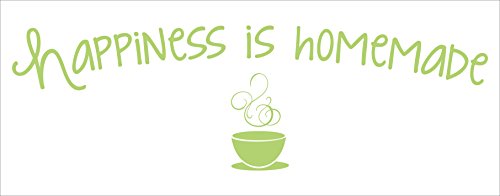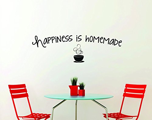 Happiness is homemade - vinyl wall Decals quote stickers for the kitchen decor. Popular wall letters with steaming coffee cup art - decorate in style! our wall Decals are safe for home decor use, are easily removable without harming your wall surface but are not reusable. Our wall Decals are ready to apply upon delivery, with the application tape already in place. The matte finish of our wall Decals makes it look like it is painted on! detailed application instructions included with your vinyl sticker Decals. Our wall decal stickers are die cut Decals they are not a printed design on a clear plastic piece. Wall Decals can be applied to any smooth or semi smooth surface. The smoother the surface, the easier your decal application will be! a squeegee is a handy tool to have for application. Exclusive of Wall Decor Plus More and made in the USA.