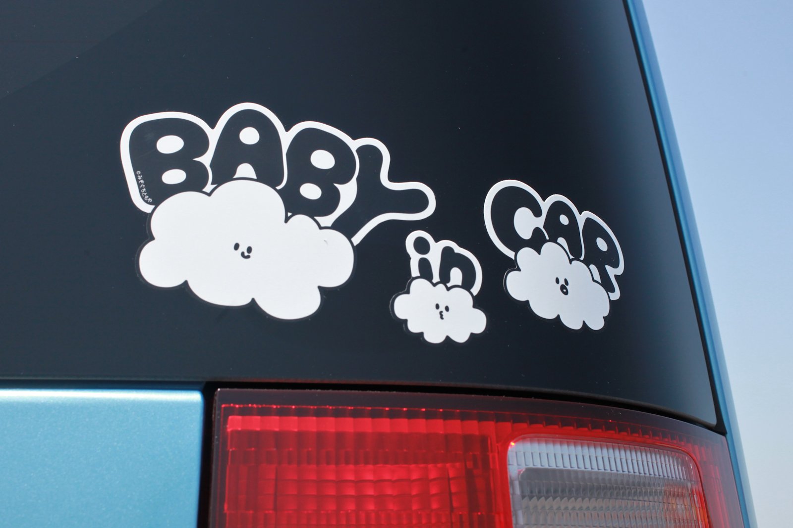 No BoRDER original drive sign sticker CLOUD FAMILY (BABY IN CAR) [seal type] STC-002AG / S