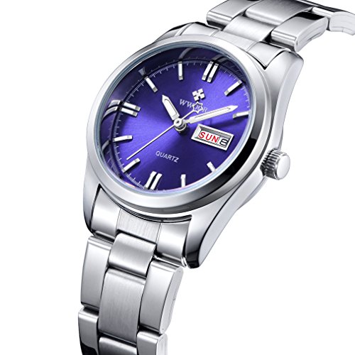 -. Title : Fashion Women's Stainless Steel Watches Casual Quartz Wrist Watches Date Day Clock WR-8804 (Blue)