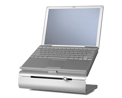 -. Binding : Personal Computers -. Brand : Rain Design, Inc. -. Color : Silver -. EAN : 0891607000315 -. Feature : Elevates the screen to eye level for better posture / Adjust height easily with front slider / Built-in turntable lets you share the screen and access ports easily / Tilt design cools laptop by helping heat escape and brings screen closer / Rubberized bar supports laptop / Easy access to front loading CD-drive for Apple MacBook Pro / Rubber pads on the stand protects your notebook and desk. / Steel construction for sturdy setup -. Label : Rain Design -. Manufacturer : Rain Design -. Model : 10031 -. MPN : 10031 -. NumberOfItems : 1 -. PackageQuantity : 1 -. PartNumber : 10031 -. Platform : Mac -. ProductGroup : Personal Computer -. ProductTypeName : COMPUTER_ADD_ON -. Publisher : Rain Design -. SKU : IGRMJ71622 -. Studio : Rain Design -. Title : Rain Design iLevel Laptop Stand with Adjustable Height and Swivel Base (10031) -. UPC : 732370720980 -. Warranty : One year limited warranty