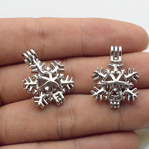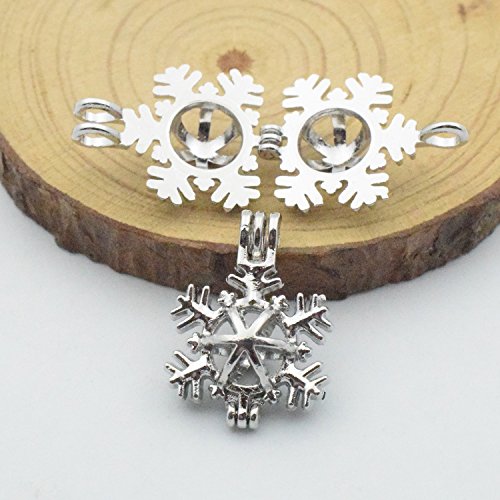 10pcs Christmas Gift Alloy Bead Cage Pendant -Snowflakes Tree Deer Santa Claus add Your Own Pearls Stones Rock Perfume Essential Oils Diffusing Locket Charms (Snowflakes C8697)