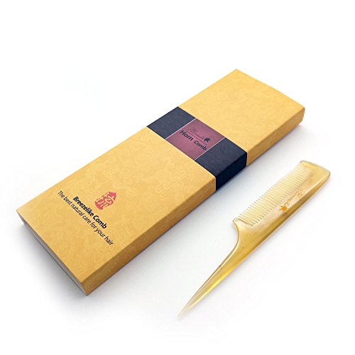 Breezelike Hair Comb with Premium Gift Box - Anti Static Natural Detangling Horn Comb - Handmade Fine Tooth Teasing Tail Comb