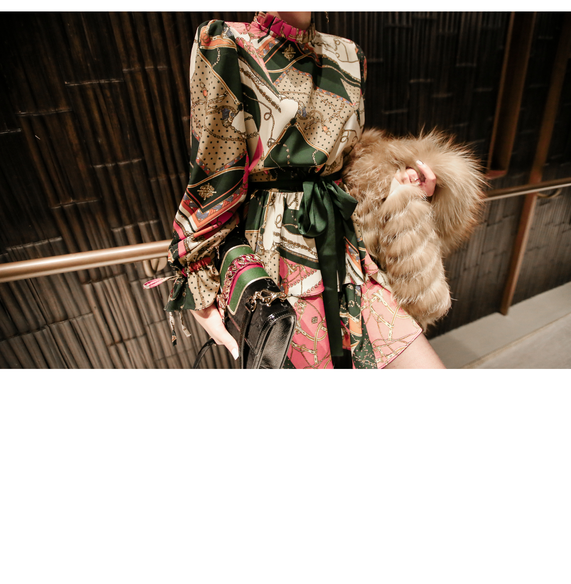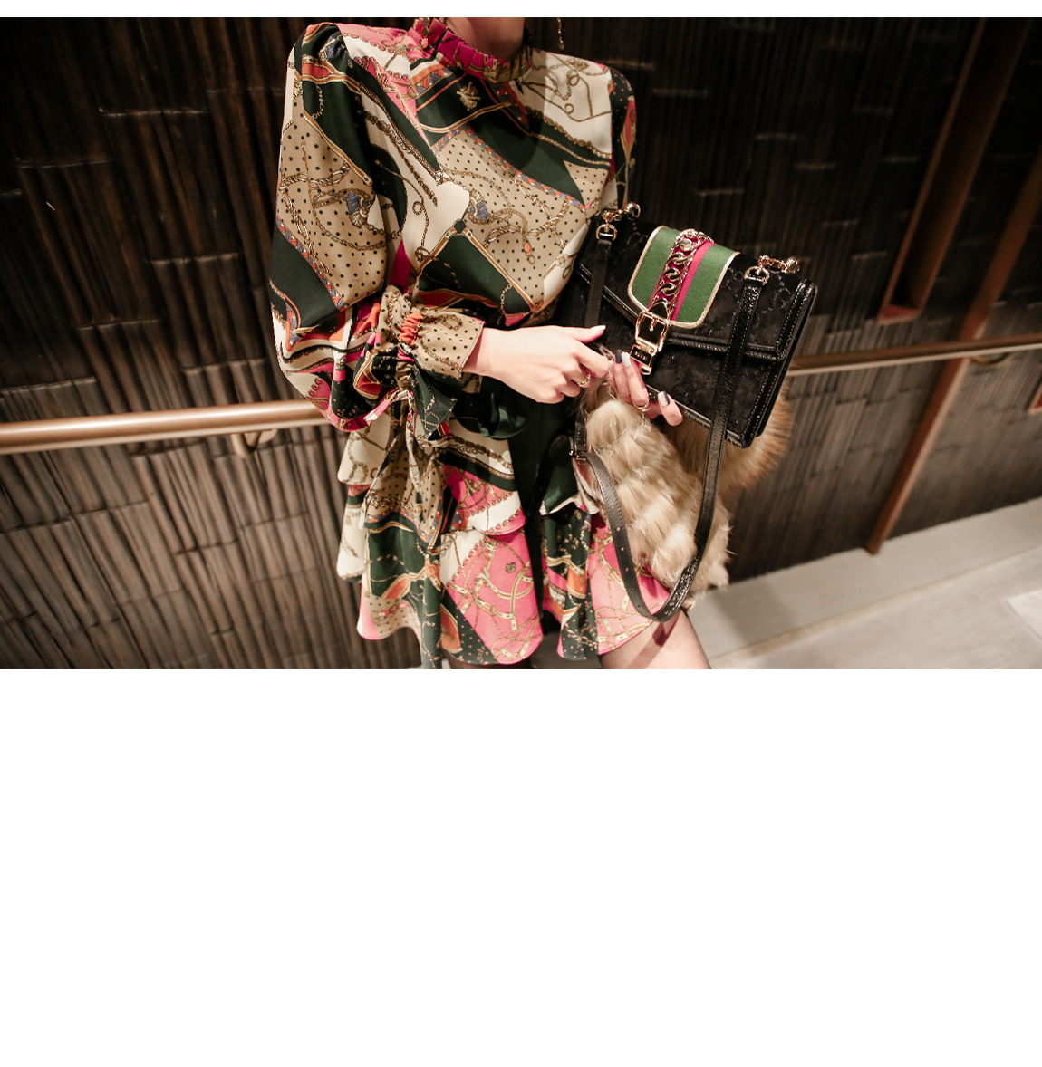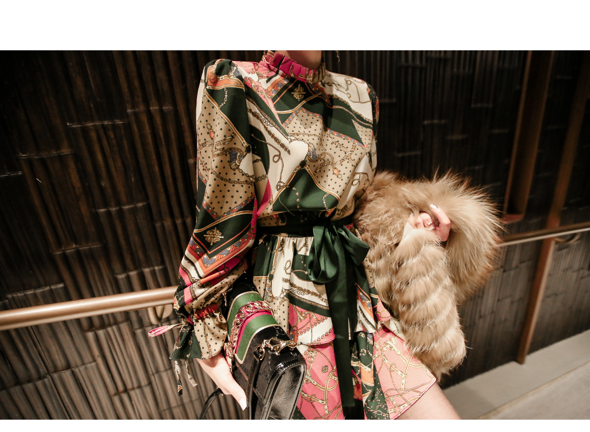 「派手なパターンワンピース」