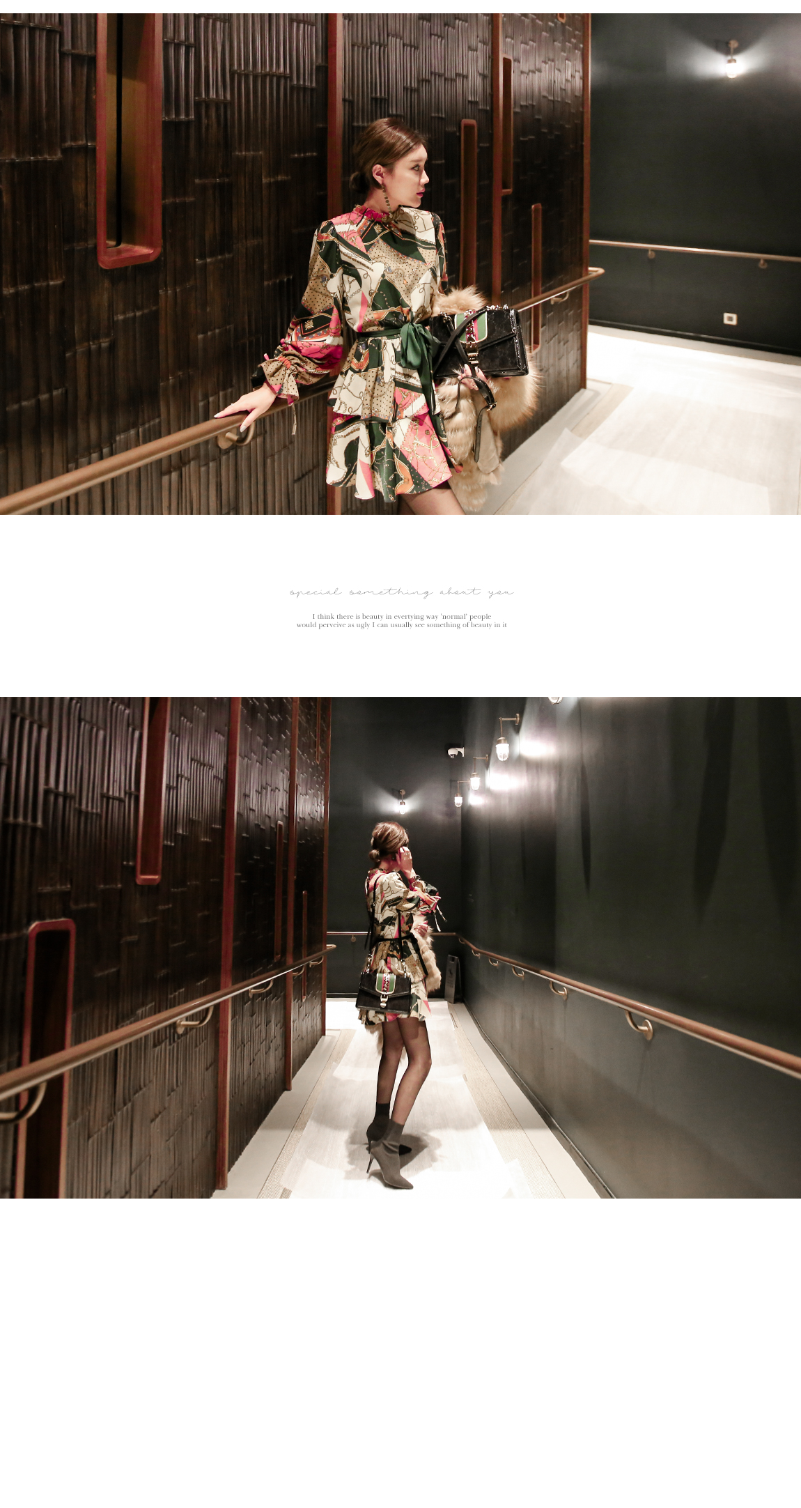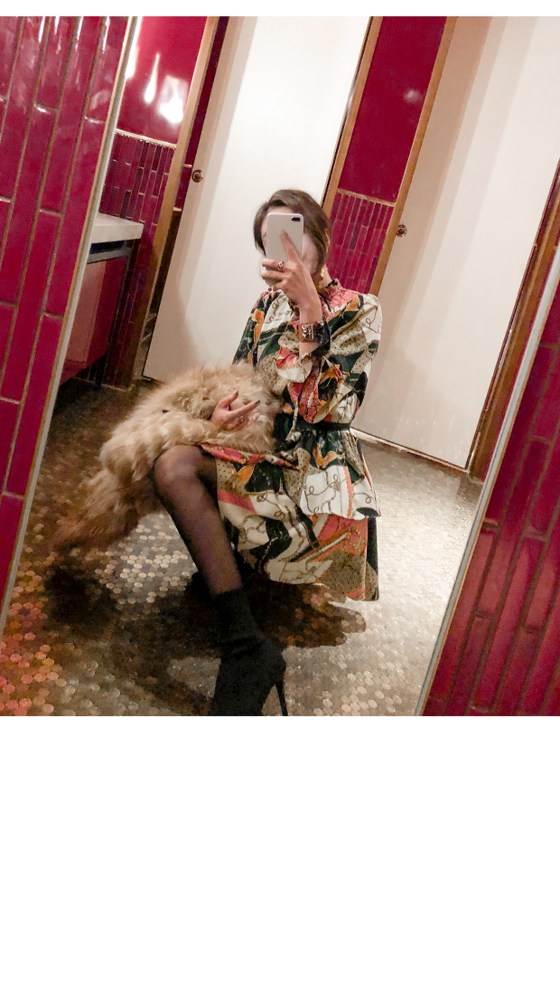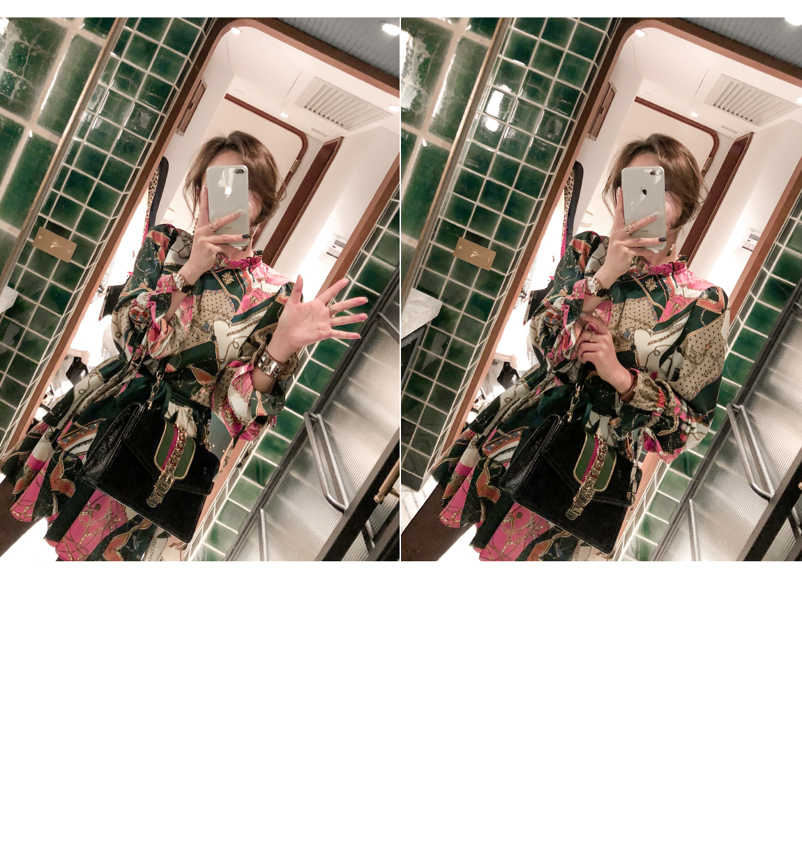 「派手なパターンワンピース」
