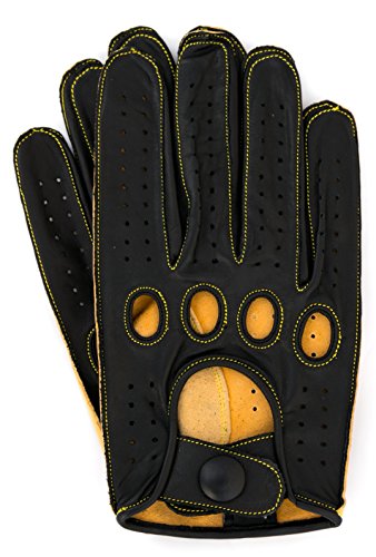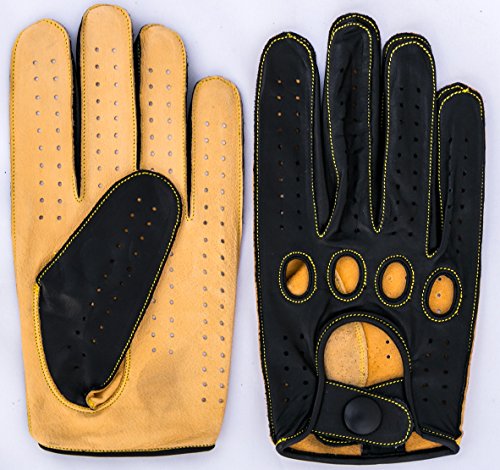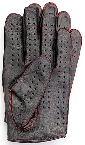 Product Description These genuine leather reverse stitched driving gloves have the quality and the features you would expect from a pair of quality driving gloves , including soft supple leather, knuckle holes and a snap closure on the wrist strap. The reverse stitching and an improved design allows for additional comfort and perfect grip while maintaining the classic design. 0