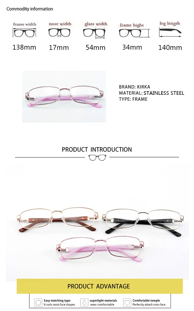 Name:Stainless Steel Retro Optical Computer Glasses Frame