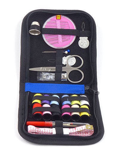 -. Feature : THE PERFECT SEWING KIT - A sewing kit which contains only the most essential and best sewing notions (sewing tools) and that too in an easy to organize kit - to let you find anything that you need in a blink. Being a pro at quick fixes like replacing the button, repairing the seam of your shirt or mending the ripped hemline was never easier. So, be more self-sufficient and take care of small repairs yourself. / EASY TO USE - The case has easy-access elastic gripper areas for making it easier to organize and find the right notions when required. The kit has a scissor that can easily cut through a lightweight muslin to even a thicker cloth, a needle that can stitch on a variety of clothes and a seam ripper that makes picking out stitches incredibly simple. A kit that in a true sense makes your life easier / SMART AND COMPACT - this sewing kit has an elegant appearance - and a compact design unlike other sewing kits available in the market - making it convenient to carry in style anywhere you travel. With this kit in your bag, you will never have to find a tailor for the basic repairs / A USEFUL GIFT - The sewing kit makes an amazing gift for use by both men and women, and is definitely something that people would love to use and will thank you for. / SUPERIOR QUALITY ALL-IN-ONE KIT- this kit contains all the necessary tools that are required for performing basic repairs - be it a scissor, threads (12 colors), assortment of sewing needles, shirt buttons, seam ripper, thimble, needle threader tools (two) or a foldable tape. Every notion in the kit is made up of high-quality materials to make sure that they do not fail to perform their function in urgency.