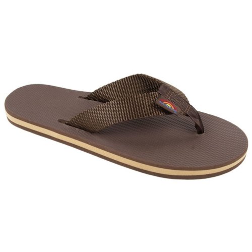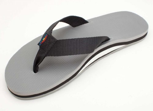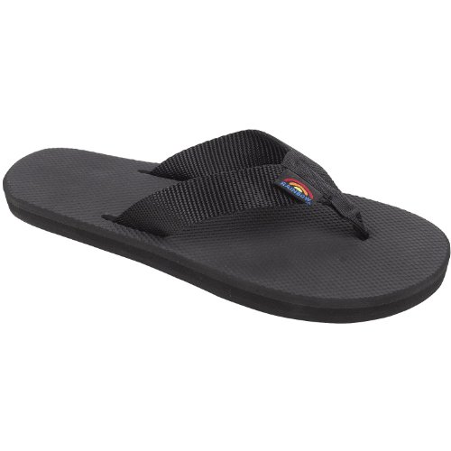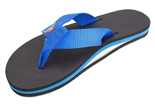 Those five-dollar flip flops seemed like a good idea until they broke halfway through your beach trip and you were left with no shoes. Learn from your mistakes and pick up the Rainbow Classic Rubber 301AR Women's Flip Flop next time instead. The strong nylon webbing strap won't rip out unexpectedly, and you'll never have to worry about the triple-glued sole layers coming apart. Of course they're more than just durable--the closed-cell foam midsole cushions your step and conforms to your foot over time for a comfy custom fit.Feature