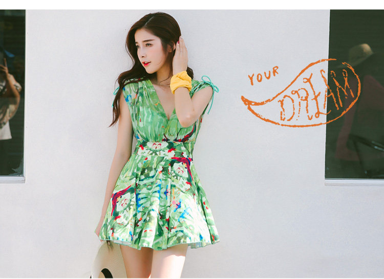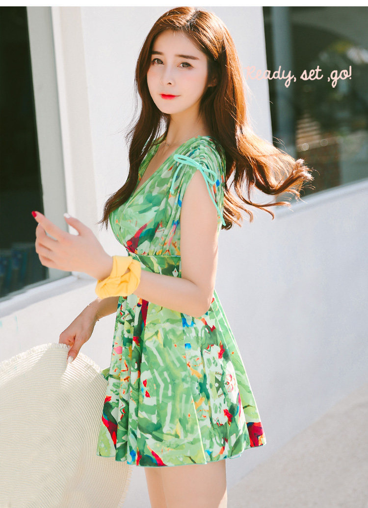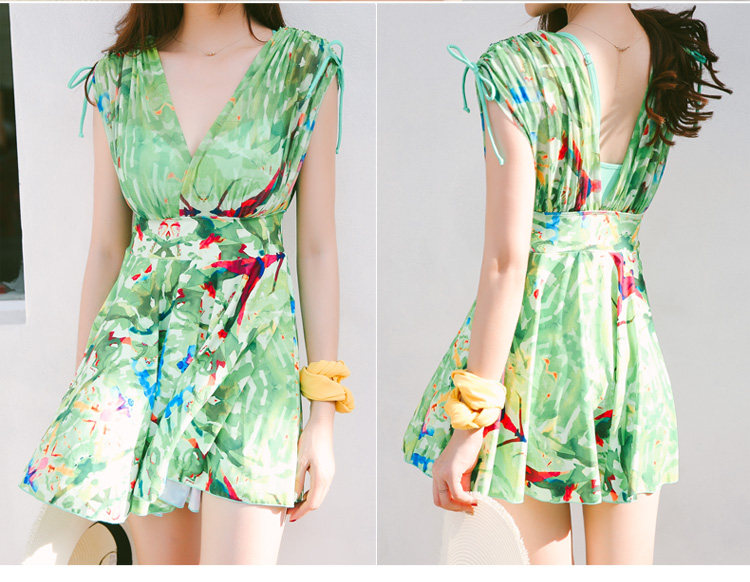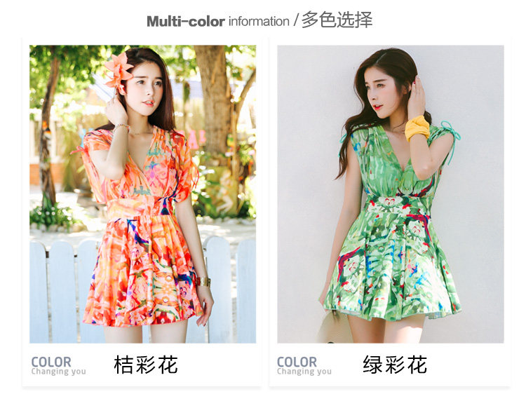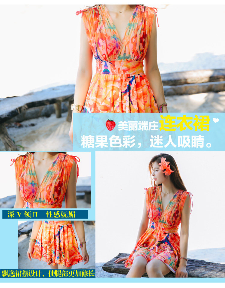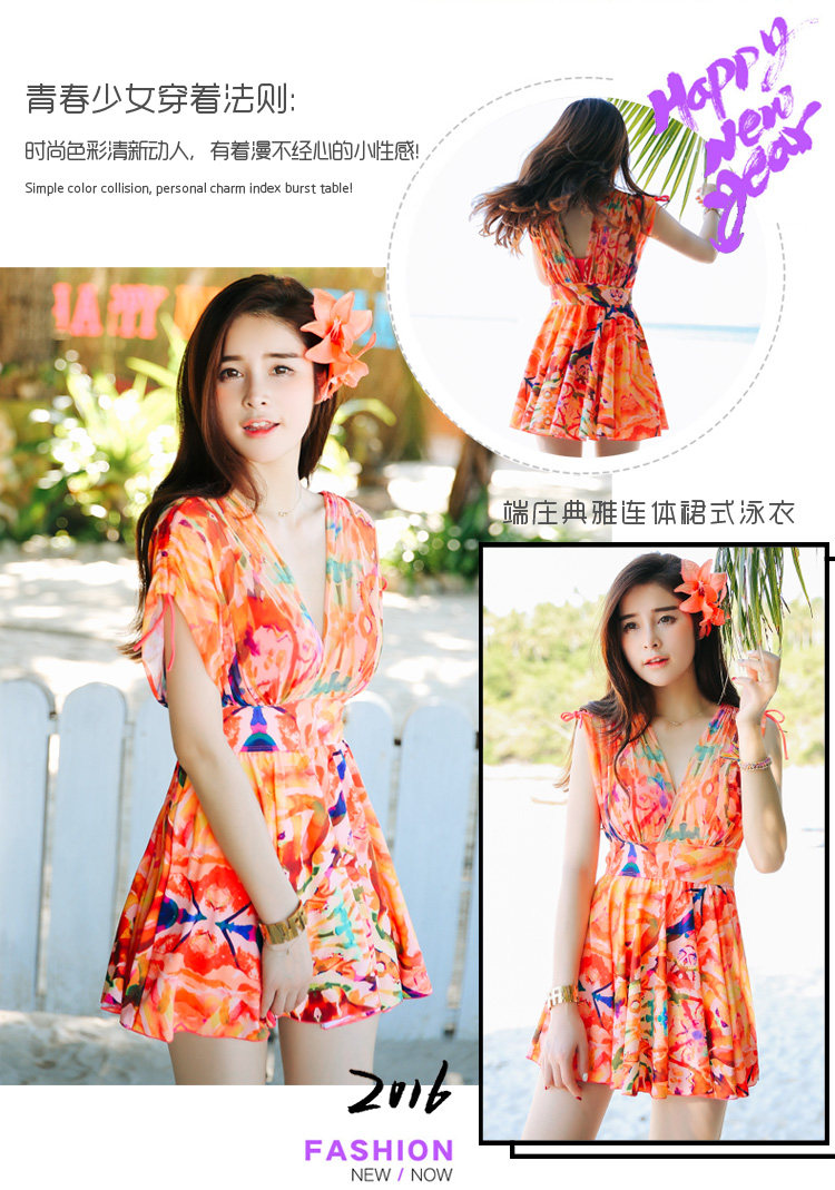 新款裙式连体游泳衣女平角大胸小胸钢托聚拢遮肚显瘦大码保守泳装