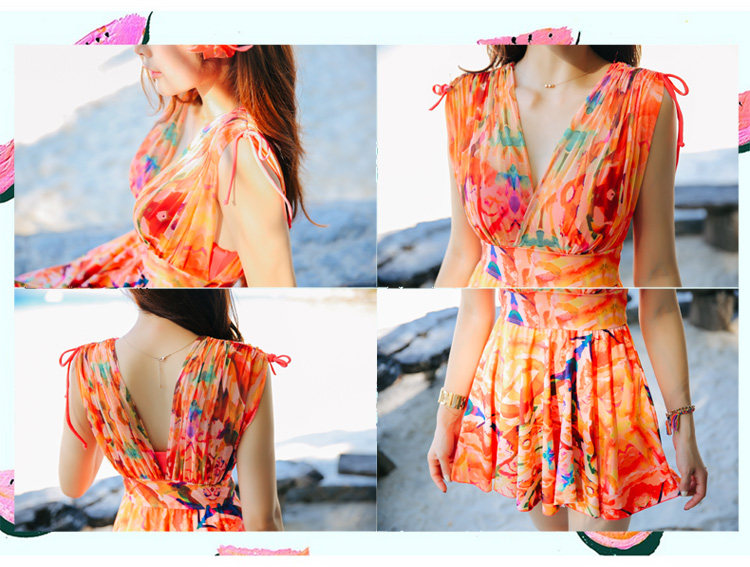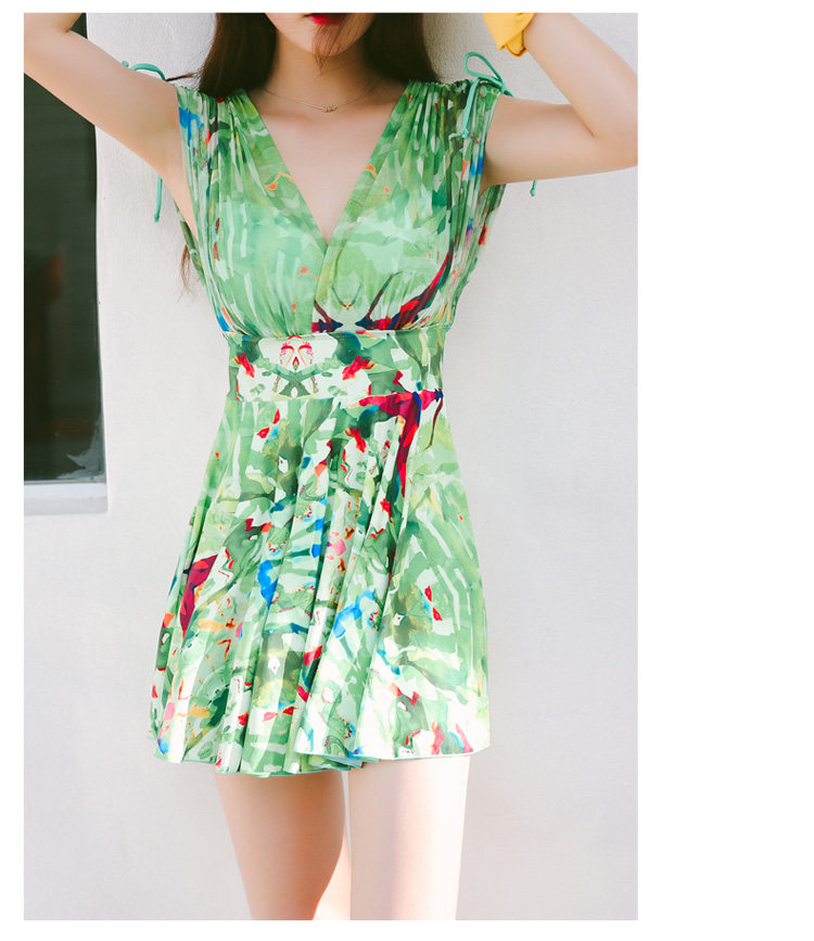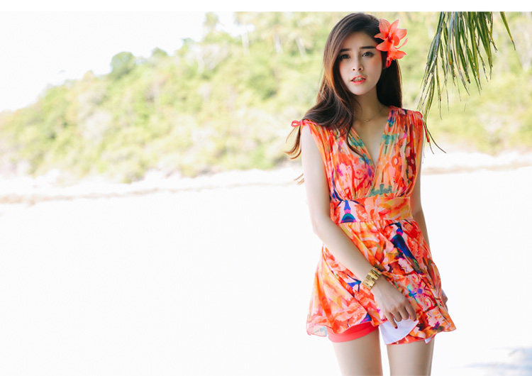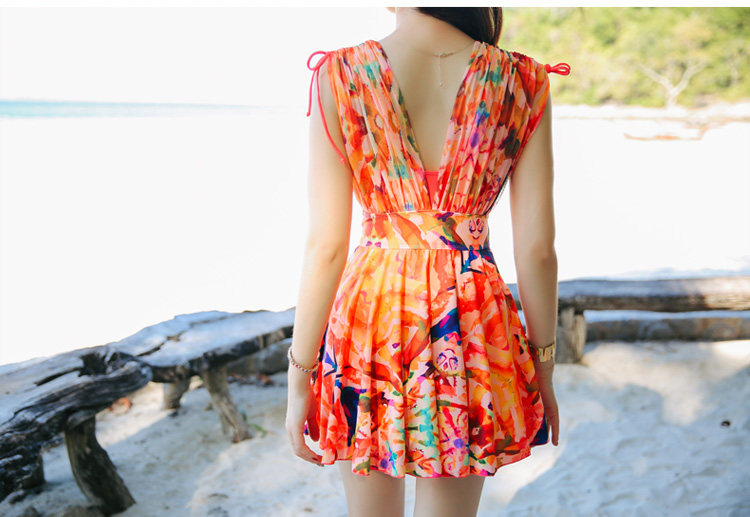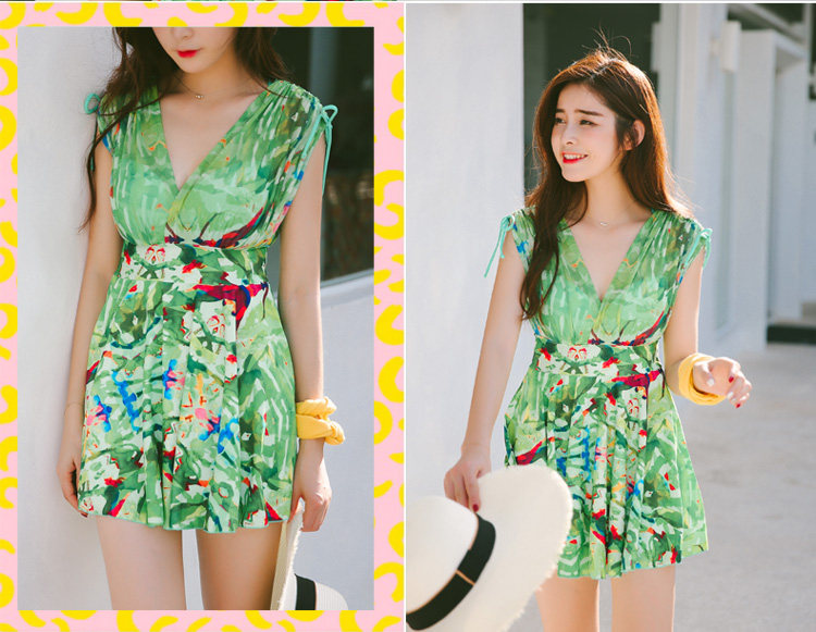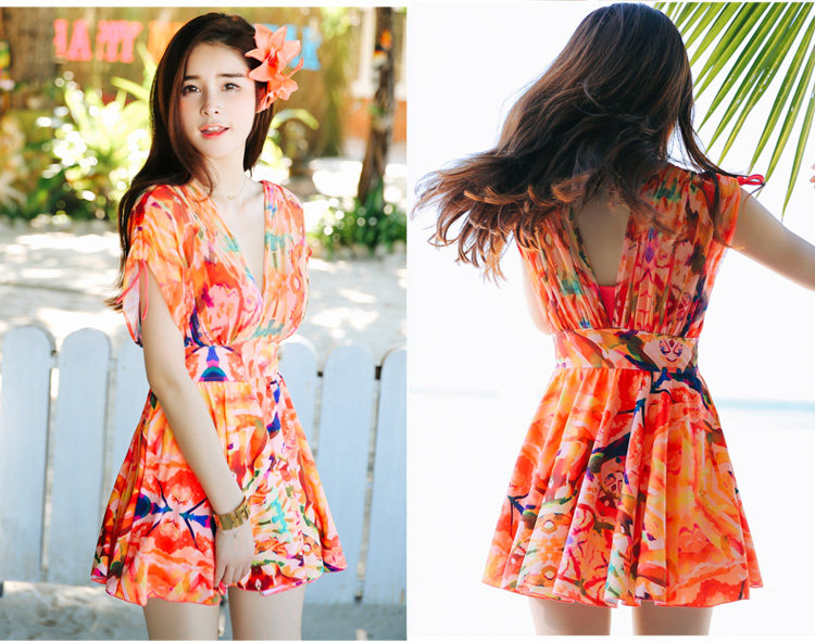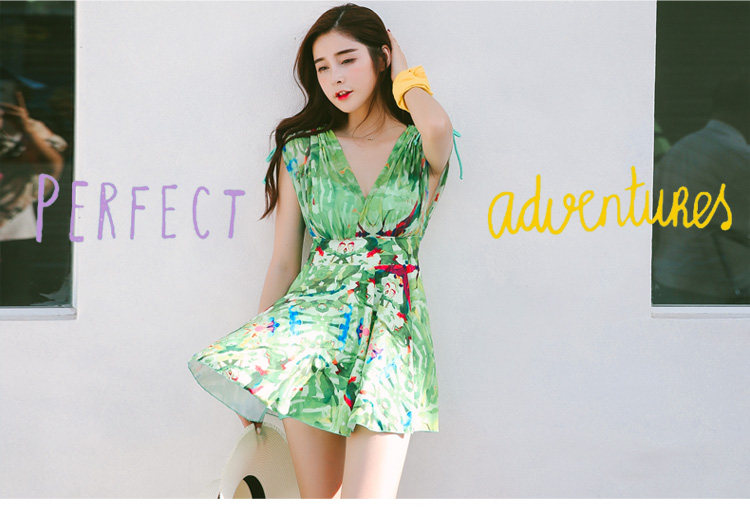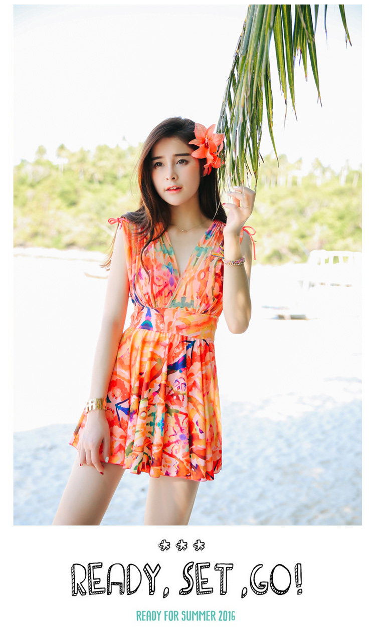 新款裙式连体游泳衣女平角大胸小胸钢托聚拢遮肚显瘦大码保守泳装