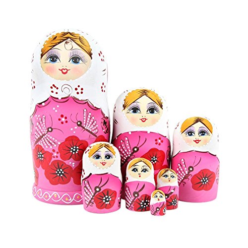 -. Title : Youbedo 7pcs Matryoshka Nesting Dolls Flower Pink Madness Nesting Dolls Authentic Russian Wooden Matryoshkas Children Kids Birthday Gifts and Home Decoration