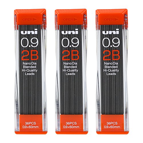 Uni-Ball Nano Lead Mechanical Pencil Lead Refills, 0.9mm, 2B, Black Lead, Pack of 108