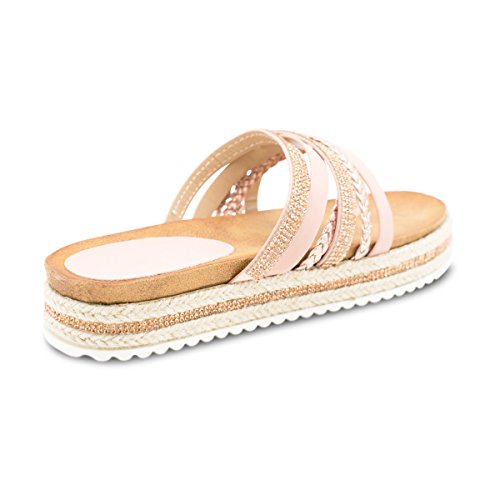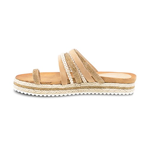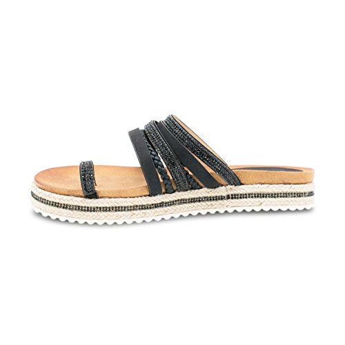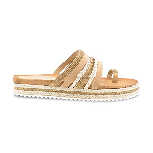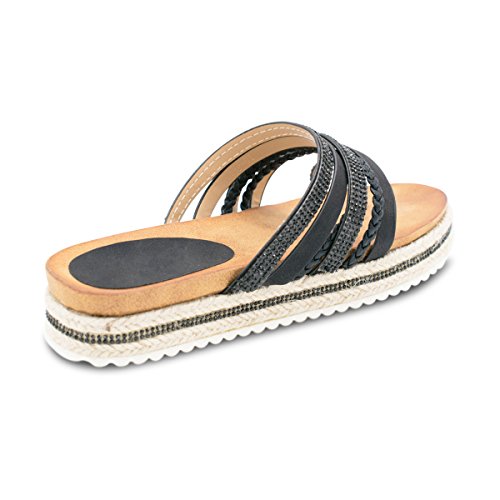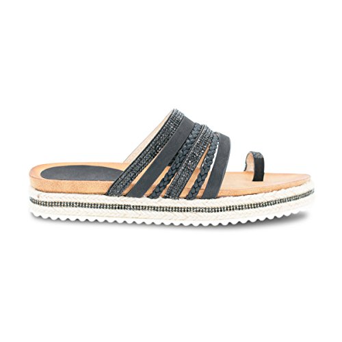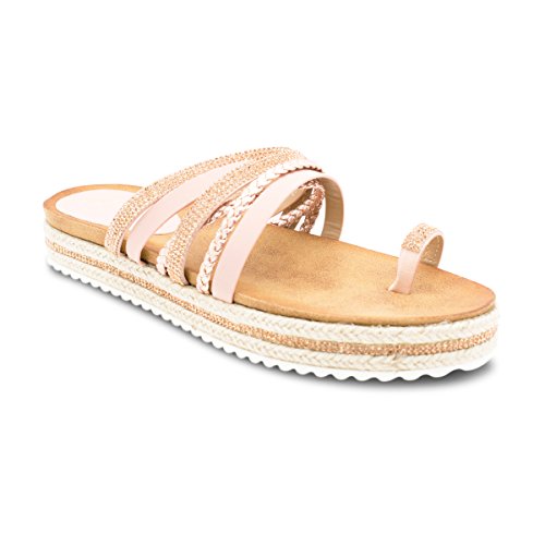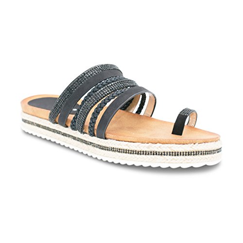 (Premier Standard)/Women's/Sandals/DIRECT FROM USA/Premier Standard Women's Rhinestone Decor Strappy Toe Ring Lug Sole Slip On Slides Sandals
