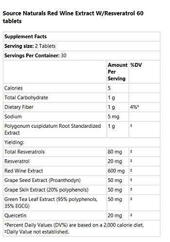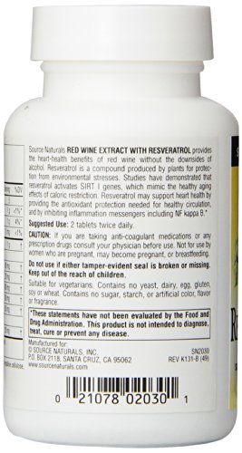 ReleaseDate : 2017-10-04 Studio : Source Naturals Publisher : Source Naturals Binding : Health and Beauty Product Description Provides heart-health benefits of red wine without the downsides of alcohol;Produced by plants for protection from enviornmental stresses;Supports heart health by providing the antioxidant protection needed for healthy circulation;May also help support healthy aging 0
