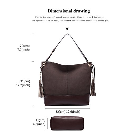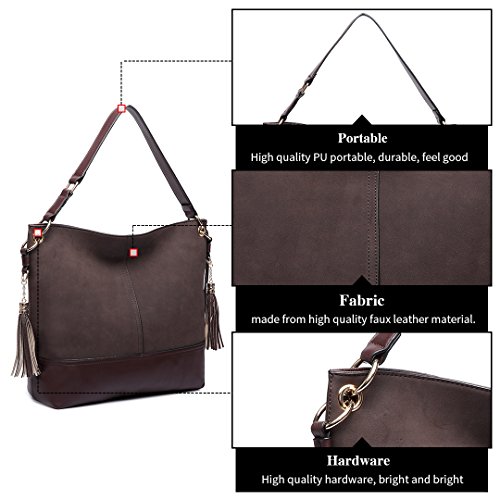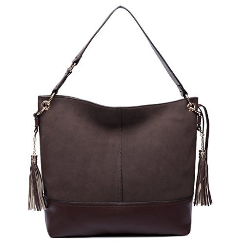 Miss Lulu Hobo Bags Fashion Casual Suede Soft Shoulder Handbag for Women with Tassels