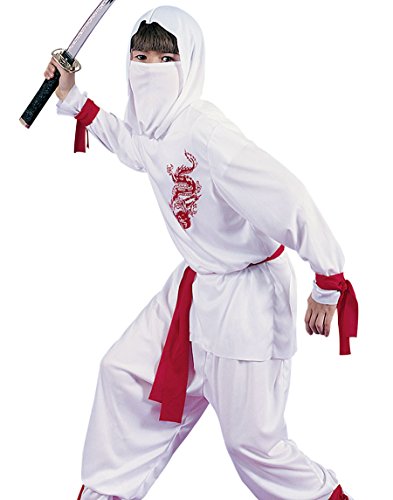 Choose this kids ninja costume in black or white. Each ninja costume includes a red belt and ties.