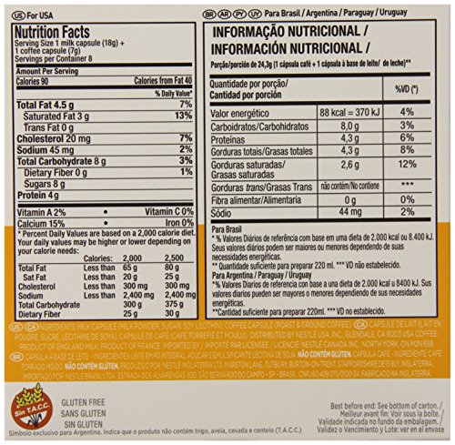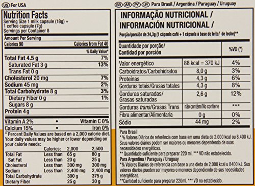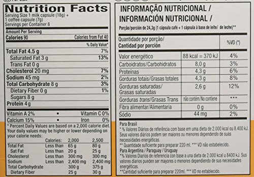 Product Description Latte Macchiato: A layered, stronger milk-base complementing a lighter-roasted coffee, delivering a smoother and softer coffee-house favorite. 24 Coffee servings with 24 Milks. Each serving requires 1 capsule of each resulting in 24 total servings. 0