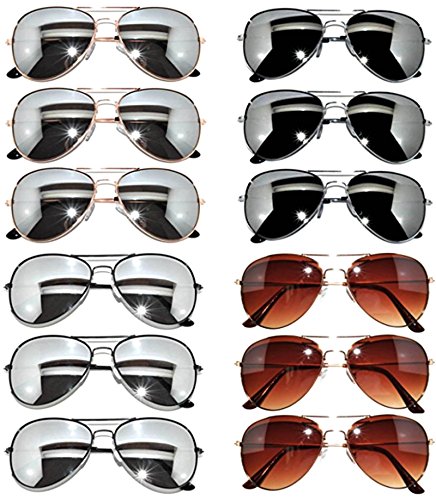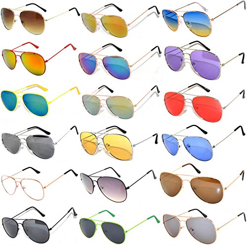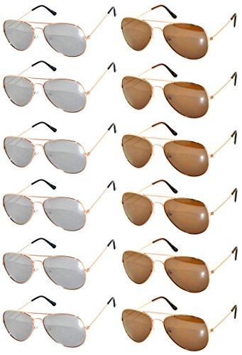 | 12 Pack Aviator Eyeglasses Metal Gold, Silver, Black Frame Colored Mirror Lens OWL. |