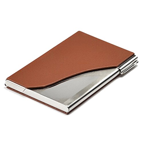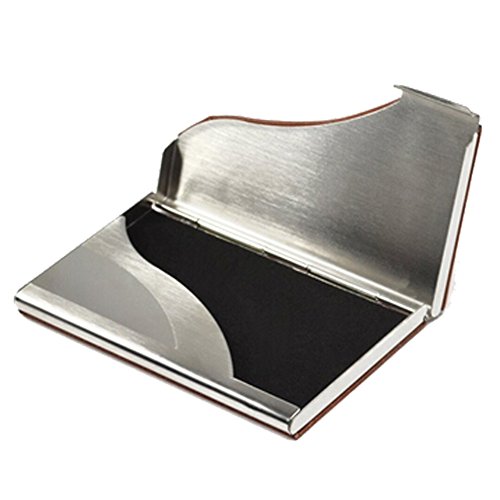 Bluboon(TM) 3 Colors PU Leather and Stainless Steel Business Name Card Case Holder (Brown)