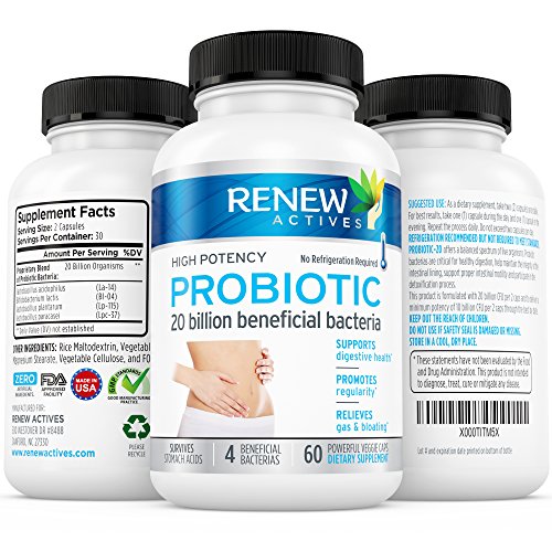 -. Binding : Health and Beauty -. Brand : Renew Actives -. EAN : 0636391757287 -. Feature : POWERFUL PROBIOTICS: Eliminate Harmful Toxins & Waste Fast / INNER HEALTH: No More Gas or Bloating. Fast Acting Constipation Relief / IMPROVED VITALITY: Kick Start Weigh Loss. Improved Vitamin Absorption / NO REFRIGERATION NEEDED: Contains No Binders, Fillers, Chemicals or Sugars / GUARANTEE: No Uncomfortable Side Effects Other Cleansing Programs May Cause -. IsAdultProduct : 0 -. Label : Renew Actives -. LegalDisclaimer : Keep this product out of reach of children. In case of accidental overdose, call a doctor or Poison Control Center immediately. These statements have not been evaluated by the food and drug administration. This product is not intended to diagnose, treat, cure or prevent any disease. -. Manufacturer : Renew Actives -. PackageQuantity : 1 -. ProductGroup : Health and Beauty -. ProductTypeName : HEALTH_PERSONAL_CARE -. Publisher : Renew Actives -. Size : 30 Day Supply -. Studio : Renew Actives -. Title : #1 BEST Double Strength Probiotic 20 Billion - Eliminates Harmful Toxins & Waste! Improves Digestions, Bowel Regularity & Increased Energy! Shelf Stable - Guaranteed! -. UPC : 636391757287