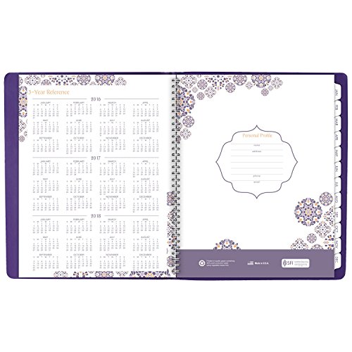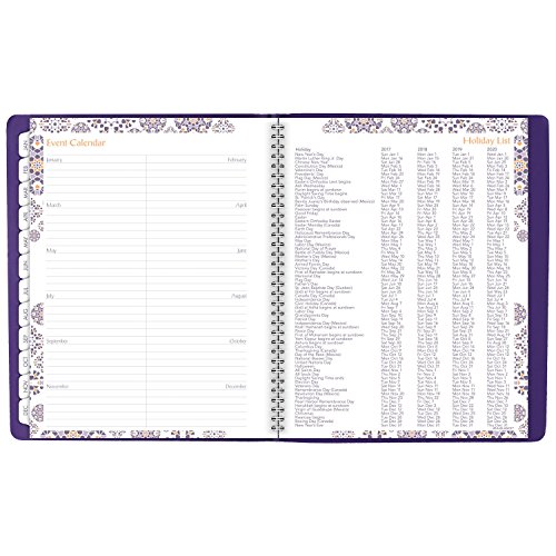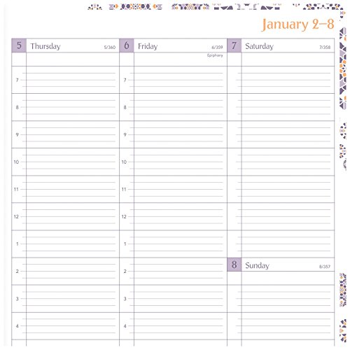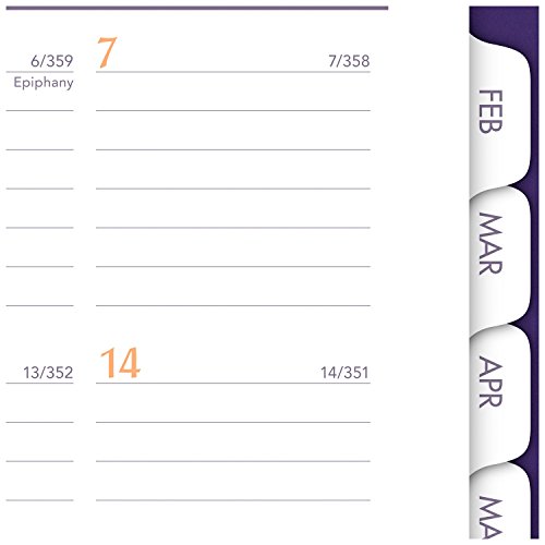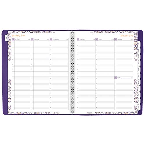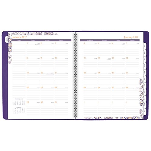 -. Binding : Office Product -. Brand : At-A-Glance -. EAN : 0038576364974 -. Feature : Soft feel, premium material purple appointment book covers are embossed with a clear geometric pattern that is subtly stylish. Planner includes 13 months of planning pages from January - January with Julian dates included. / One week per two page spread is column style with hourly appointments Monday - Friday. Times run from 7:00 a.m. - 8:00 p.m. for a full day of plans. Saturday and Sunday share a column and are untimed for more flexible weekends. / One month per two page spread includes ruled daily blocks to keep handwriting aligned for notes that are neat easy to read. Monthly spreads are tabbed with a column for notes and past/future month reference calendars for date checking. -. Label : ACCO Brands -. Manufacturer : ACCO Brands -. Model : 584-905-17 -. MPN : 584-905-17 -. NumberOfItems : 1 -. PackageQuantity : 1 -. PartNumber : 584-905-17 -. ProductGroup : Office Product -. ProductTypeName : OFFICE_PRODUCTS -. Publisher : ACCO Brands -. Studio : ACCO Brands -. Title : AT-A-GLANCE Weekly / Monthly Appointment Book / Planner 2017, Premium, 8-1/2 x 11", Purple (584-905) -. UPC : 038576364974