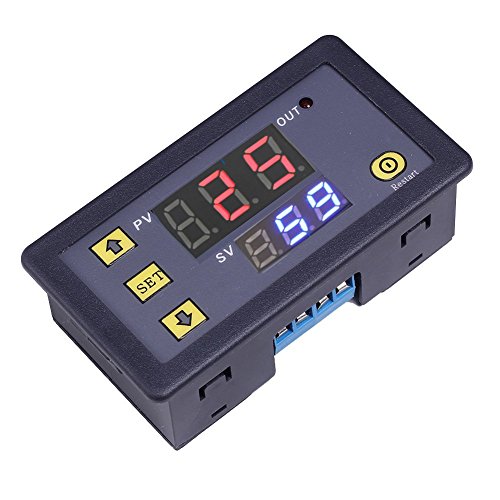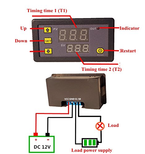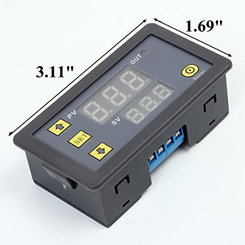 Icstation Programmable 12V 1 Channel Digital Cycle Delay Relay Timer Switch Red Green Dual LED Display 0-999 Hours
