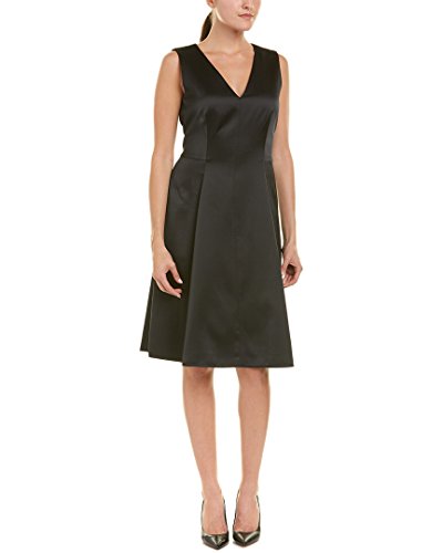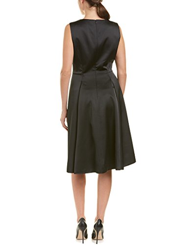 Anne Klein Women's Sleeveless V-Neck Fit and Flare Satin Dress, Black, 16