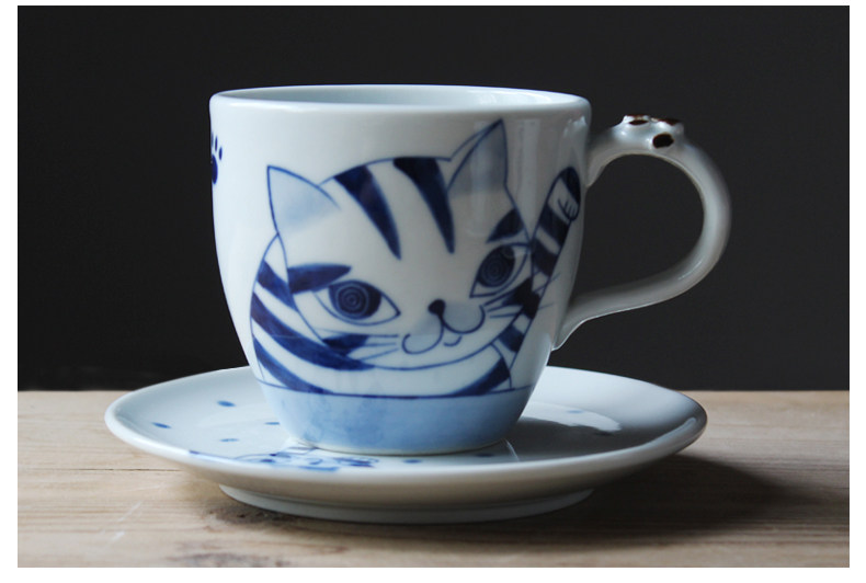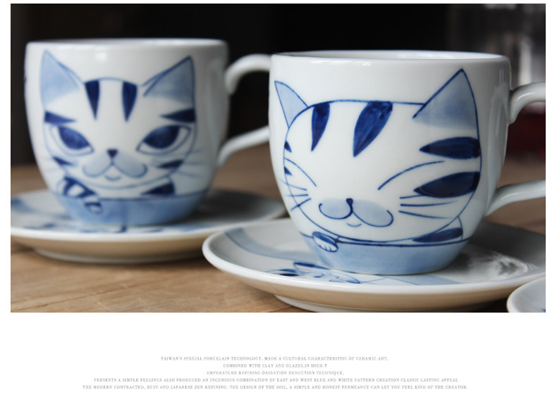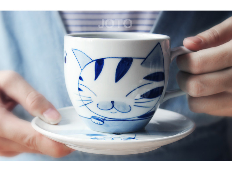 手工咖啡杯碟套装英式下午茶杯可爱陶瓷猫咪杯子花杯咖啡具