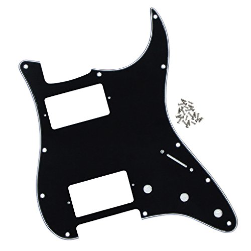 Product Description Specification:Humbucker-Humbucker pickguard, 11 hole standard mounting pattern with counter-sunk mounting screw holes.3 control pot holes pre-drilled in Standard Volume-Tone-Tone Positions (Positions 1, 2, 3).1 standard size switch cut with 2 switch mounting holes (1 each side of switch cut; not counter-sunk).Humbucker hole size: 38mm x 70mmHumbucker screws center/center: 78mmMaterial: Made of 3ply PVC, with off set screw holes and beveled edge.With pure aluminum foil shielded.Color: Black ColorWith protective film on the surface, while using please split it off.Note:Item's color might be different from the picture because of the aberration.Package Includes:1 x guitar pickguard25 x mounting screws 0