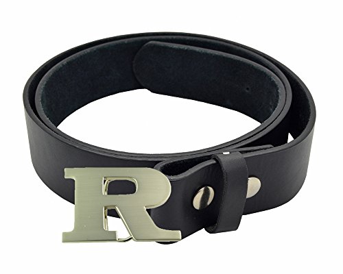 (ACCmall)/Accessories/Belts Buckles/DIRECT FROM USA/Stainless Steel "R" Initial Buckle Genuine Black Leather Belt (40 in or 44 in)