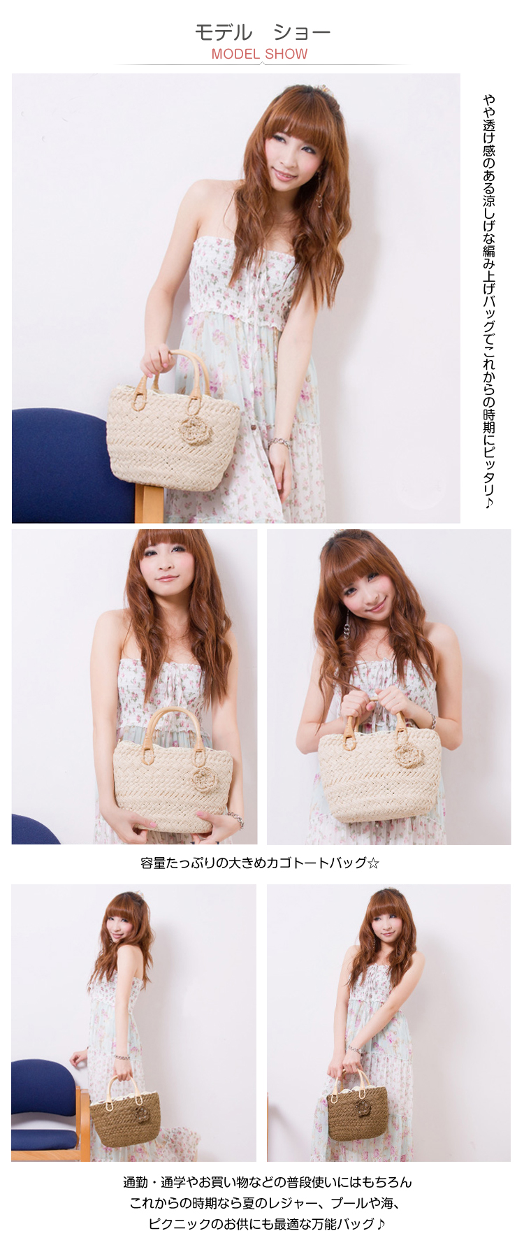 | ざっくりと編み上げられたレースフラワー飾りのサマーバッグ!春夏のお出掛けにぴったりな優秀アイテム!容量たっぷりの大きめカゴトートバッグ☆やや透け感のある涼しげな編み上げバッグでこれからの時期にピッタリ?通勤?通学やお買い物などの普段使いにはもちろんこれからの時期なら夏のレジャー、プールや海、ピクニックのお供にも最適な万能バッグ?カラー展開も豊富です! | |