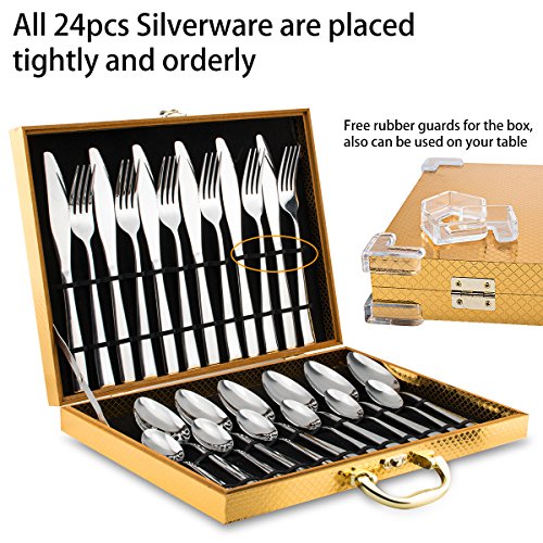 Silverware Set, Lekoton Stainless Steel Flatware Sets 24 pcs Kitchen Home Dinnerware Cutlery Set Tableware Utensil Set Service for 6 with Spoon Fork Knife Luxury Gift Box