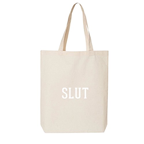 Product DescriptionThis cotton canvas tote bag features "SLUT" on the front. 15" Wide x 16" High x 3" Deep with 20" handles. Printed in the USA on an imported bag.0