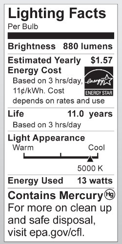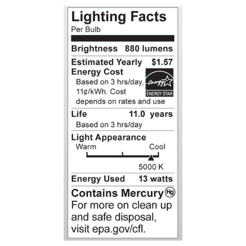 Satco S7366 13-Watt Candelabra Base T2 Mini Spiral, 5000K, 120V, Equivalent to 60-Watt Incandescent Lamp for Enclosed Fixtures