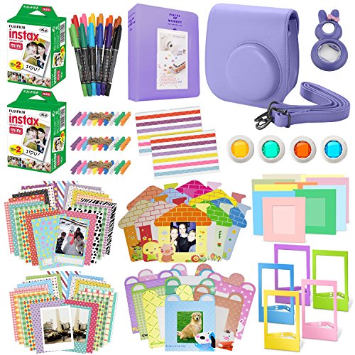 135 PIECE ACCESSORY KIT CONTAINS: 40 sheets of Fujifilm INSTAX Mini Instant Film, 1 Case, 1 Album, 4 Close up filters, 12 Marker pens, 10 Paper frames, 10 Bunny paper frames, 9 House Frames, 5 color plastic frames, 1 Selfie mirror lens, 2 sheets of corner stickers, & 40 piece film stickers