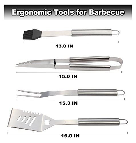 DURABLE STAINLESS STEEL TOOL CONSTRUCTION: Good quality, substantial construction for lasting long. They are nice quality, sturdy, and attractive which makes you look like a professional griller. Dishwasher safe.