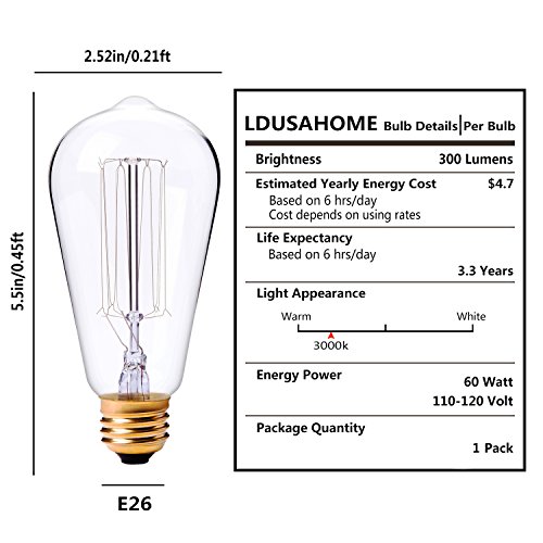 - Edison Light Bulbs Introductions: ST64 Incandescent Light Bulbs Save Up to 80% Energy,E26 Base Screw,60W 120V 3000K Warm Light Dimmable Glass